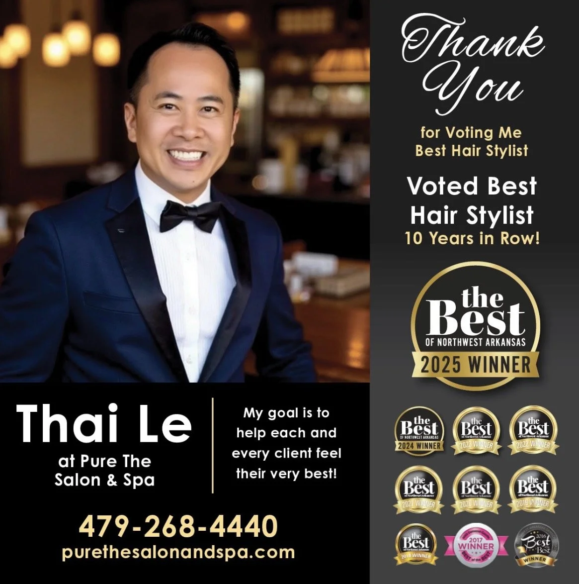 Winner 10 Years In Row “ Best Hair Stylist" 2016, 2017, 2018, 2019, 2020, 2021, 2022 , 2023 , 2024 , 2025 Of NWA Democrat-Gazette
